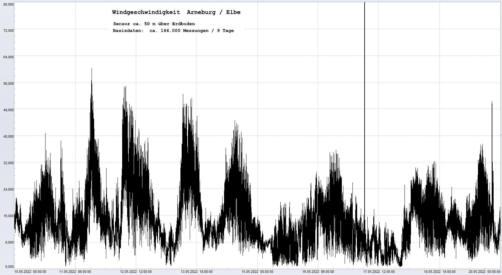 Windgeschwindigkeit 0 bis 80 km/h