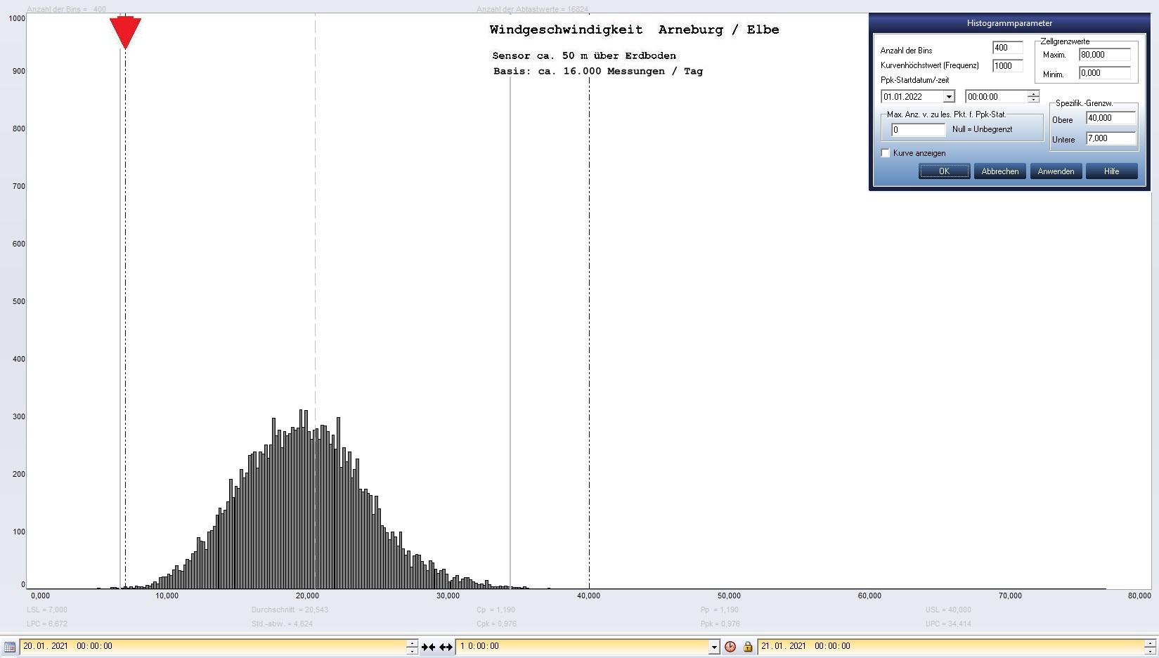 Arneburg Tages-Histogramm Winddaten, 20.01.2021