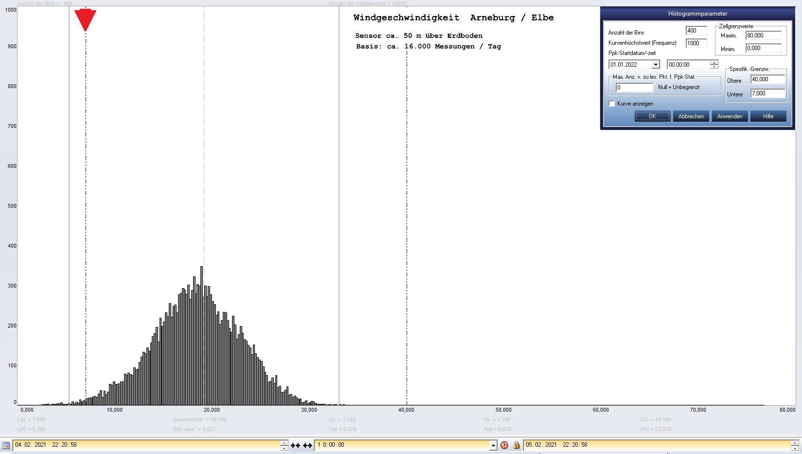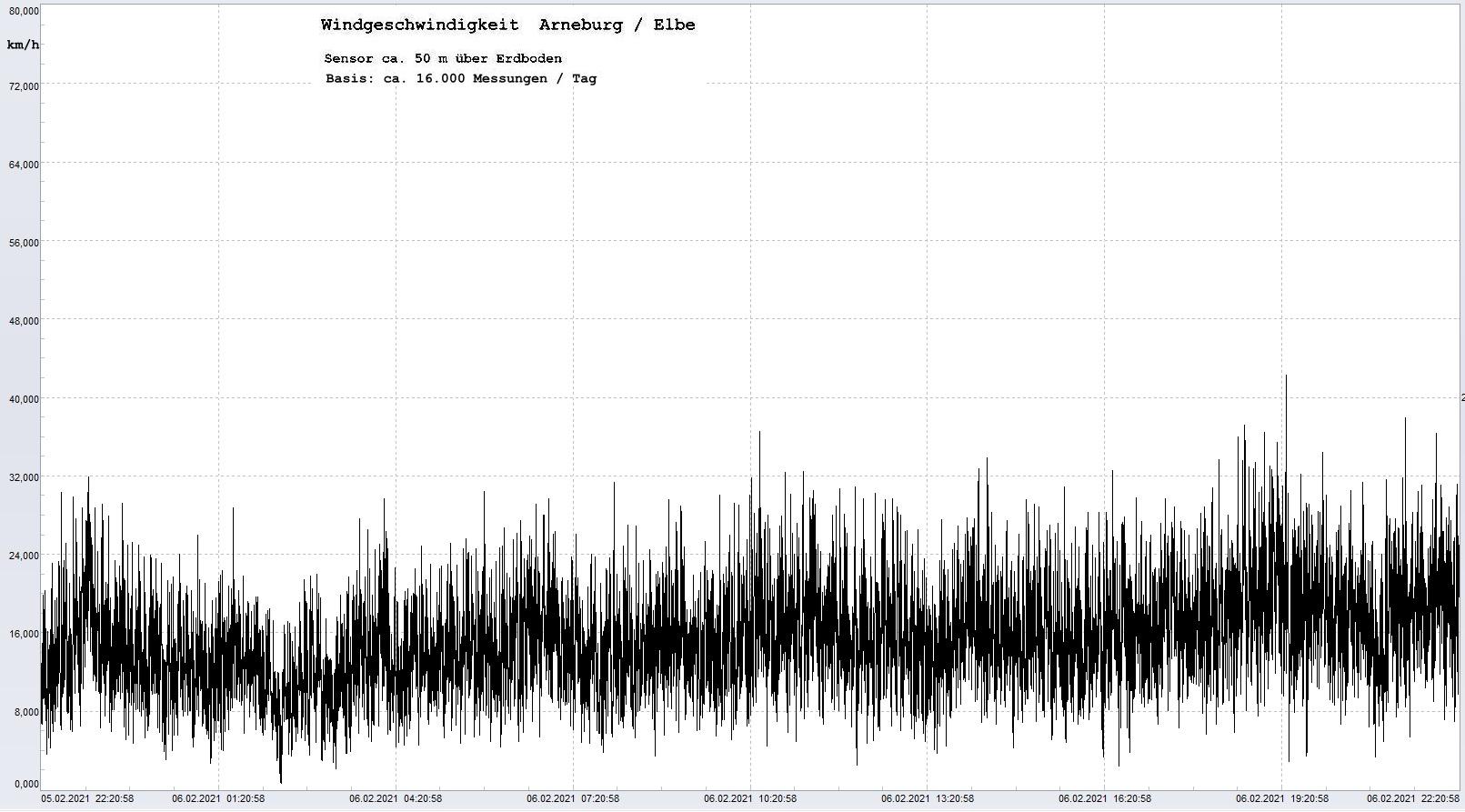 Arneburg Tages-Histogramm Winddaten, 05.02.2021