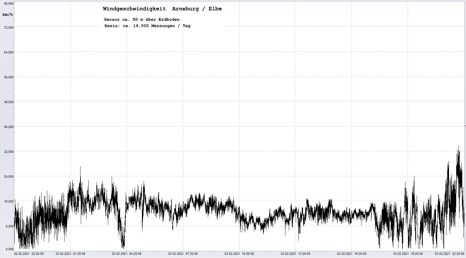 Arneburg Tages-Histogramm Winddaten, 03.02.2021